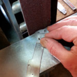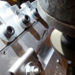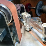 Ensuite, la lame est émouturée à la bande abrasive grâce au support réglable.