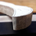 Un carton vulcanisé de couleur ajoute de l’esthétique tout en jouant le rôle de tampon entre deux matériaux différents.