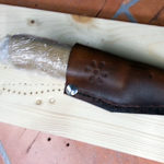 Les étuis en cuir pour les couteaux droits sont décorés et teintés si nécessaire puis façonnés pour épouser la forme du couteau.