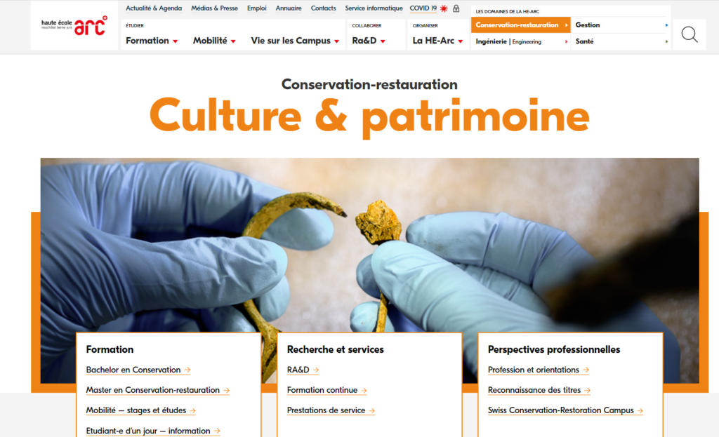 Site de la Haute Ecole d’art de Neuchâtel. Conservation-restauration.