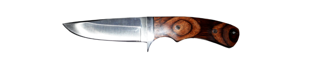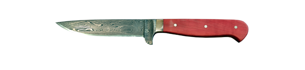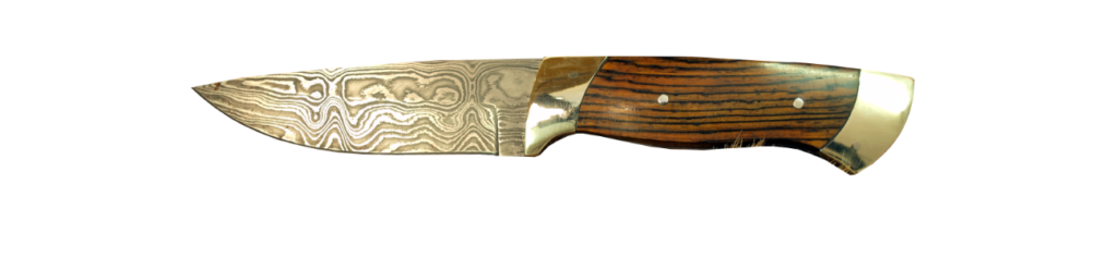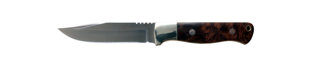 – Lames inox, carbone ou damas, habillage en divers bois et loupes de bois stabilisés au « cactus juice ».