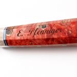 Loupe de peuplier teinté rouge et stabilisé, bague en bois de renne, intercalaire bleu