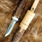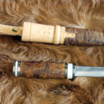 cuir naturel avec loupe de bouleau, bague en bois de renne et maillechort