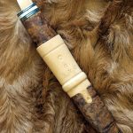 loupe de bouleau, bagues en bois de renne et maillechort, intercalaires noirs