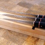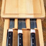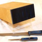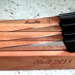 Supports pour 2, 3 ou 4 couteaux, planches à tiroir pour 3, 4 ou 5 couteaux, coffrets en bois massif, supports verticaux, etc. En hêtre, ébène, plaqués érable ou cocobolo, etc.